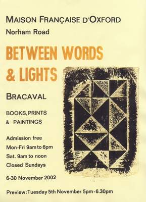 In the early 1970s, Bracaval became renowned in the contemporary art world for his mastery of large formats, color, and generous gesture. Bracaval has always remained faithful to abstract painting with no apparent subject matter, and has continuously enriched and enhanced his style. Living in the countryside has prevented him from losing touch with nature, landscapes, the light of large open spaces, the colors of the earth and the sky. Far from the hustle and bustle of the city, the silence he chooses may limit his familiarity with day-to-day affairs, but his art has improved its profundity. His evolution surprises only those who confuse renewal with novelty. He uses simple forms (triangles, squares, rectangles) to structure the space, spread out the surfaces, and delimit the zones of his work. The geometry of the art, meanwhile, is but the beginning. In the general synergic organization of a painting, each part has its own matter and light, yet does not function independently of the others. Engraving (in wood or metal) is merely a progression in the continuum of the work of a painter, in which the objective is to engage all the “states” in the arrangement of the work of art. It is easy to understand why for more than twenty years Bracaval has made books, asking literary friends for poetry to accompany his own engravings. From the choice of paper to the typography to the printing by hand, every moment in the execution of a work of art reflects the savoir faire of the artist, who undeniably disdains any flamboyant demonstration of his own virtuosity. Vincent Rousseau